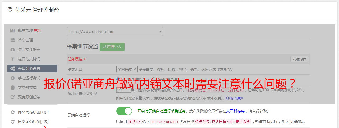优采云 发布时间: 2021-12-24 23:13报价(诺亚商舟做站内锚文本时需要注意什么问题?