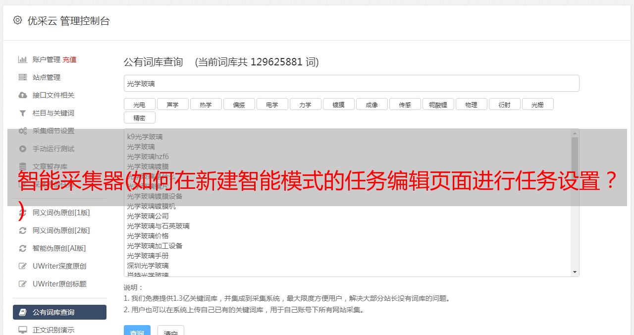 优采云 发布时间: 2021-12-25 04:10智能采集器(如何在新建智能模式的任务编辑页面进行任务设置?
