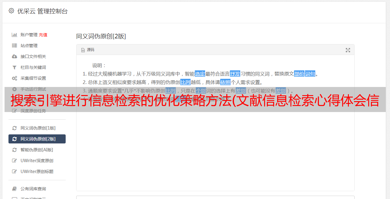 优采云 发布时间: 2021-12-25 05:03搜索引擎进行信息检索的优化策略方法(文献信息检索心得体会信息查询和获取的主要方式是什么?)