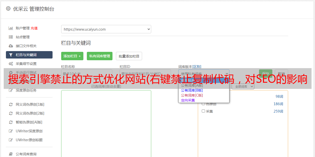 优采云 发布时间: 2021-12-25 06:04搜索引擎禁止的方式优化网站(右键禁止复制代码,对SEO的影响有哪些??)