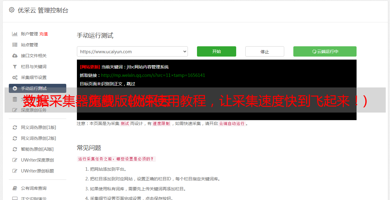文章采集器免费版(优采云 数据采集器旗舰版软件使用教程,让采集速度快到飞起来!)