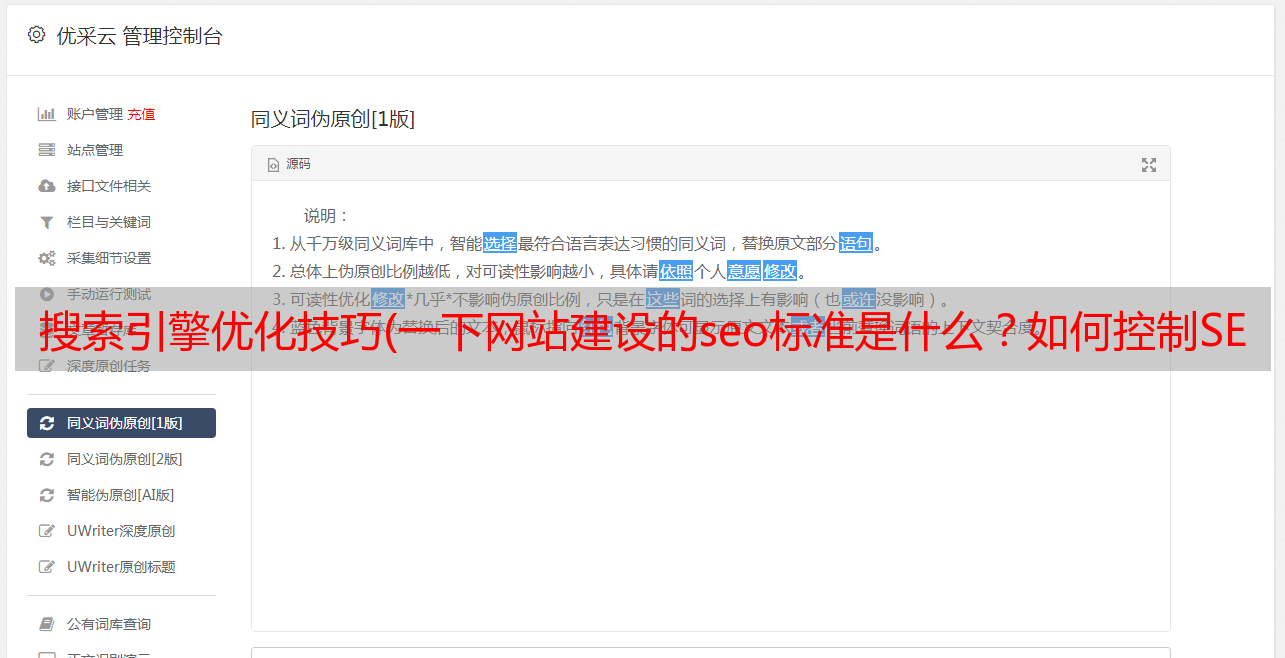 优采云 发布时间: 2021-12-25 18:11搜索引擎优化技巧(一下网站建设的seo标准是什么?如何控制SEO排名)