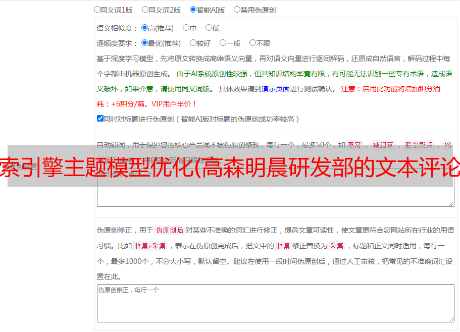 优采云 发布时间: 2021-12-26 01:11搜索引擎主题模型优化(高森明晨研发部的文本评论技术(TextSentiment)主题模型)