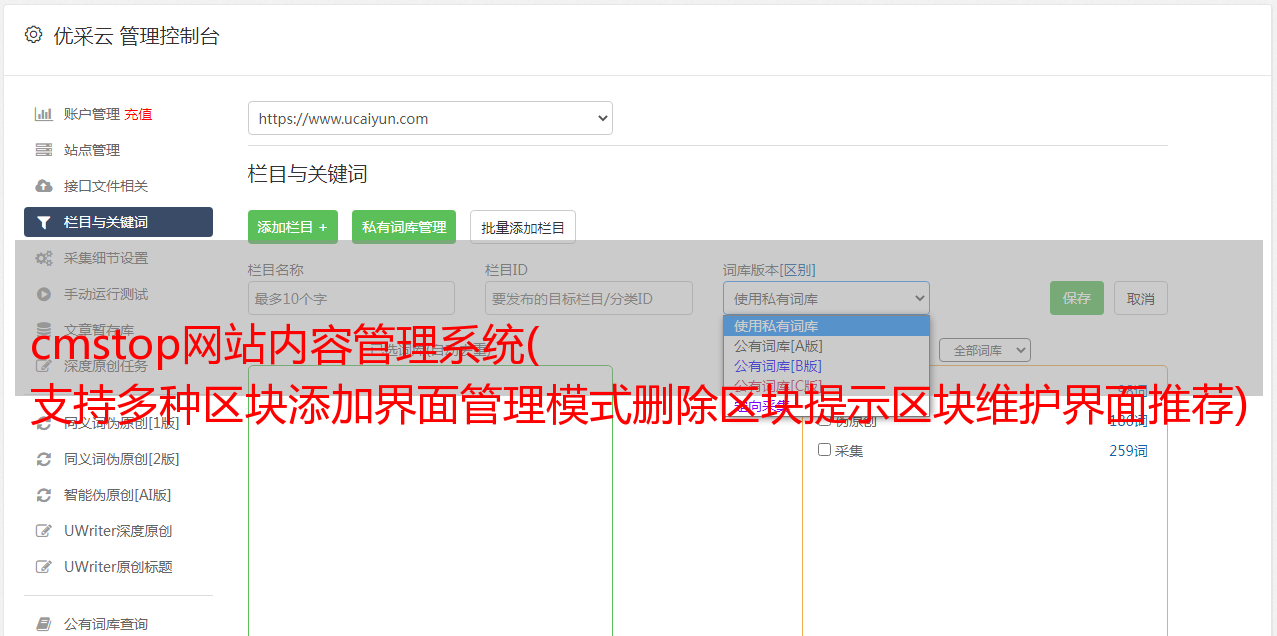 cmstop网站内容管理系统( 支持多种区块添加界面管理模式删除区块提示区块维护界面推荐)