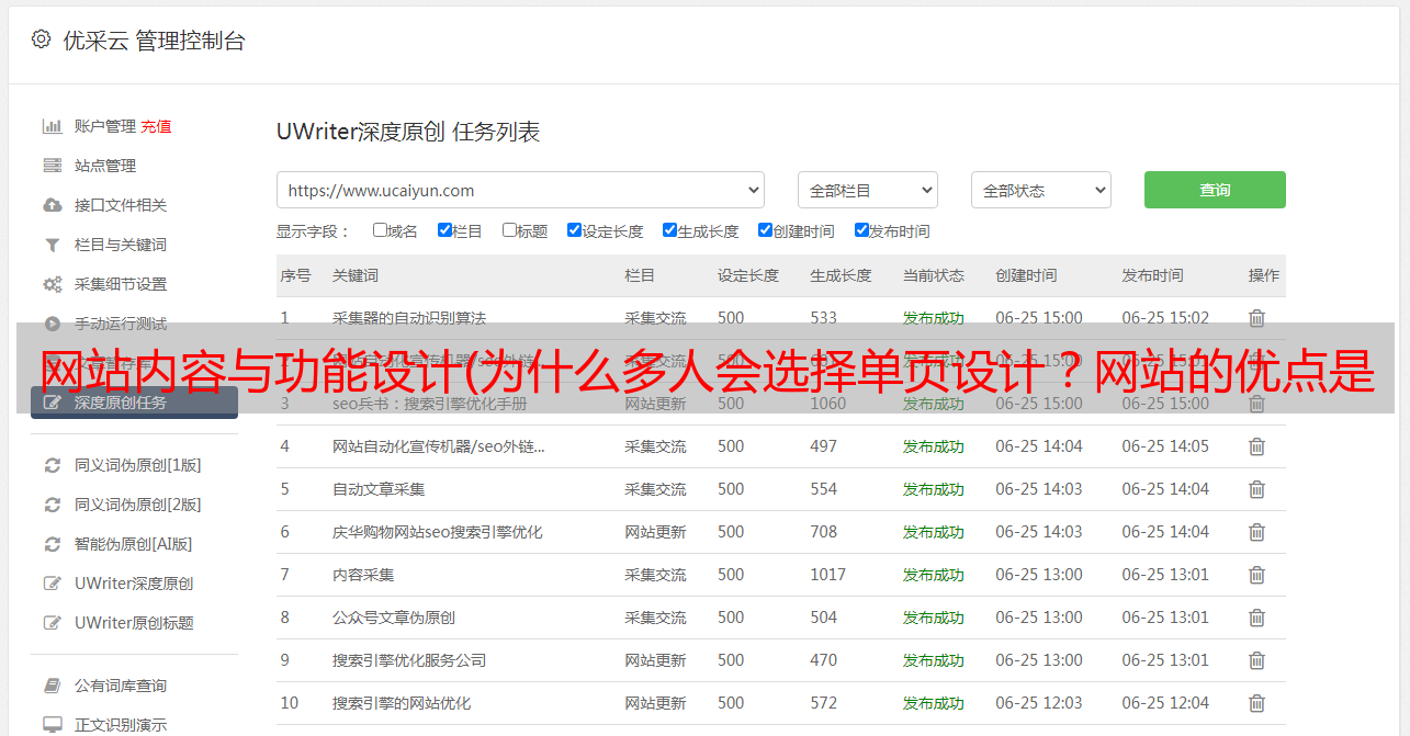 优采云 发布时间: 2021-12-26 09:11网站内容与功能设计(为什么多人会选择单页设计?网站的优点是什么?)
