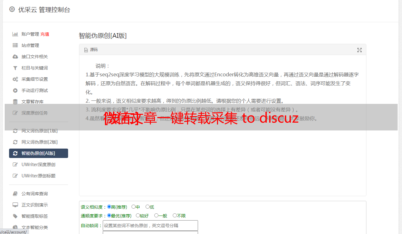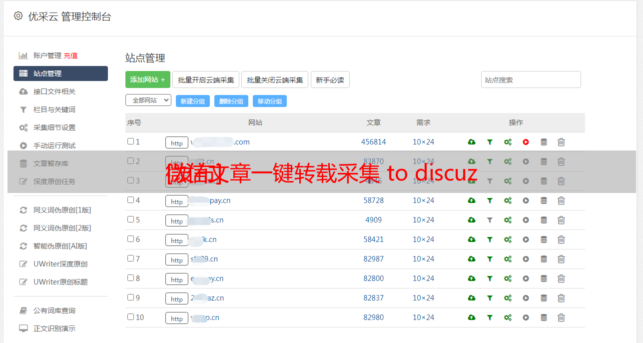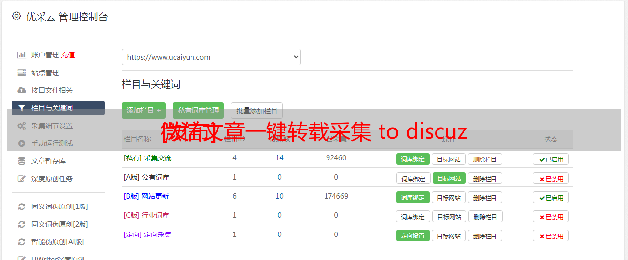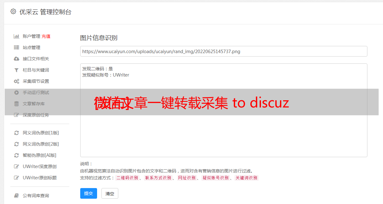 以下内容将图文介绍怎样使用“优采云采集器”一键转载陌陌文章,并发布到discuz峰会程序。(本程序全部独立存在,不更改源主程序及数据表,不影响程序升级。原文链接:)