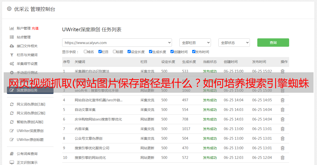 优采云 发布时间: 2021-12-26 20:14网页视频抓取(网站图片保存路径是什么?如何培养搜索引擎蜘蛛习惯?)