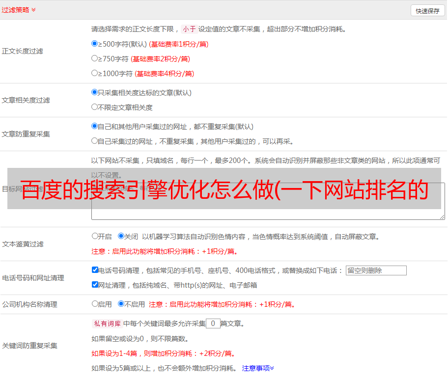 4、 相关计算:看分词频率关键词(频率低的搜索引擎比较关注),看词的频率密度,关键词的位置和形式( 关键词位置很重要百度搜索排名,如开头、结尾、H1、加粗中、高相关)、关键词距离(小距离、高相关)、*敏*感*词*的文字(这个应该是考虑最多的,也许这可以反映我们对我们的一些外部优化工作的要求)