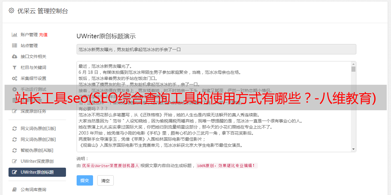 优采云 发布时间: 2021-12-28 01:04站长工具seo(SEO综合查询工具的使用方式有哪些?-八维教育)