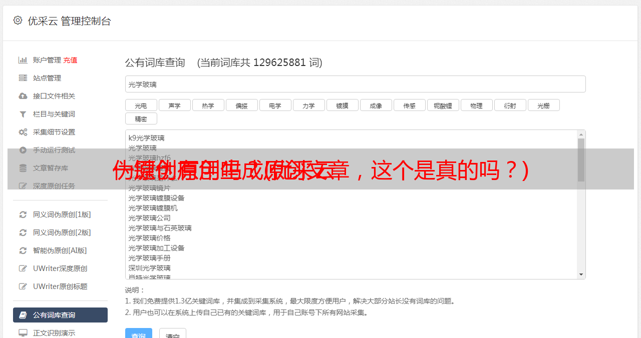 一键伪原创生成原创文章_是真的吗?一键伪原创生成原创文章_是真的吗?邵捏一键伪原创生成原创文章_是真的吗?小发狗一键伪原创原创文章是真的吗?优采云