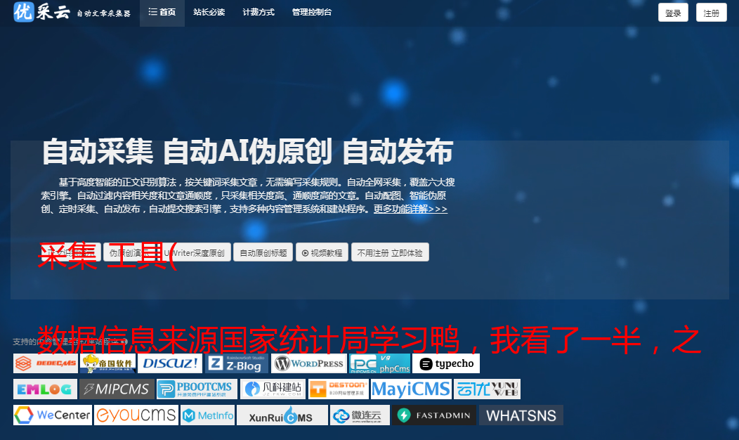 优采云 发布时间: 2021-12-28 06:01数据信息来源国家统计局学习鸭,我看了一半,之后就停下了)
