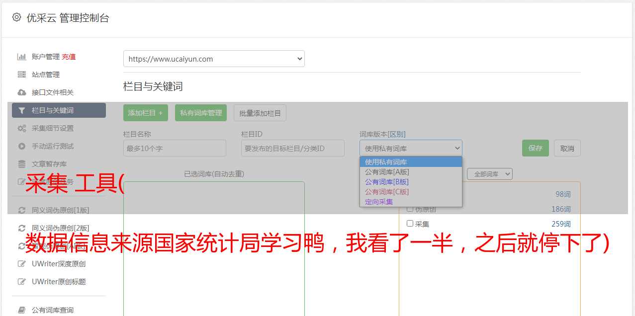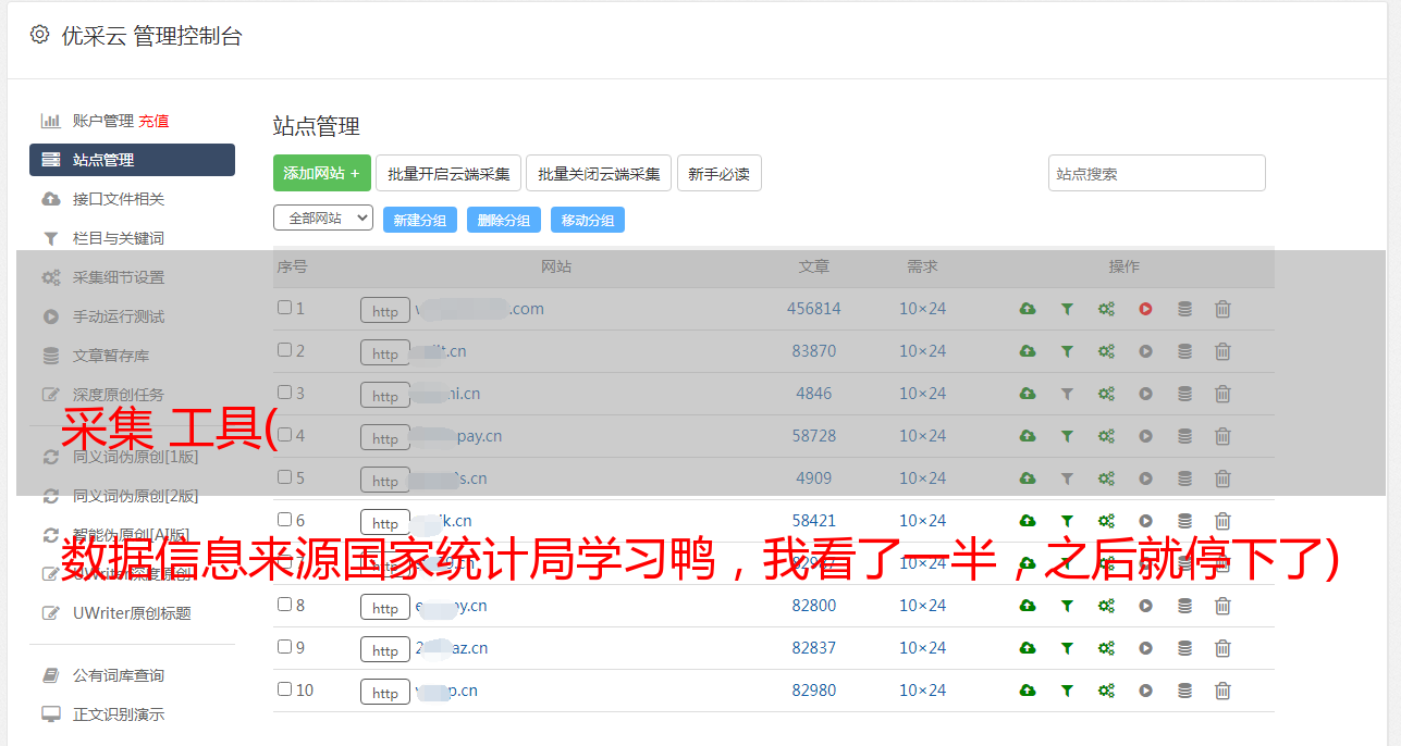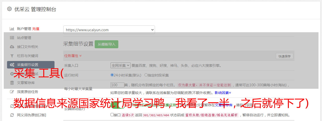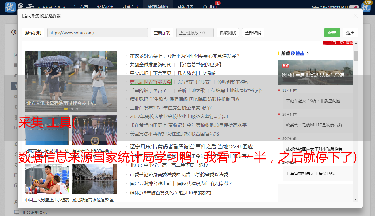 采集 工具( 数据信息来源国家统计局学习鸭,我看了一半,之后就停下了)