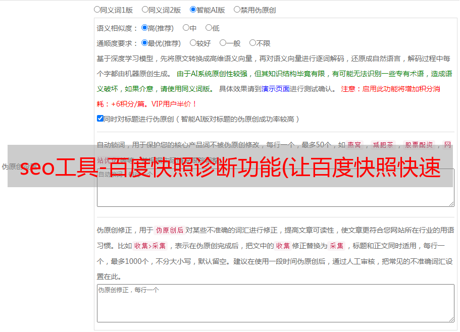 seo工具-百度快照诊断功能(让百度快照快速更新?如何让网站快照时间隔夜更新 )
