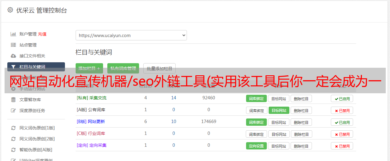 优采云 发布时间: 2021-12-28 17:13网站自动化宣传机器/seo外链工具(实用该工具后你一定会成为一位牛B的站长)