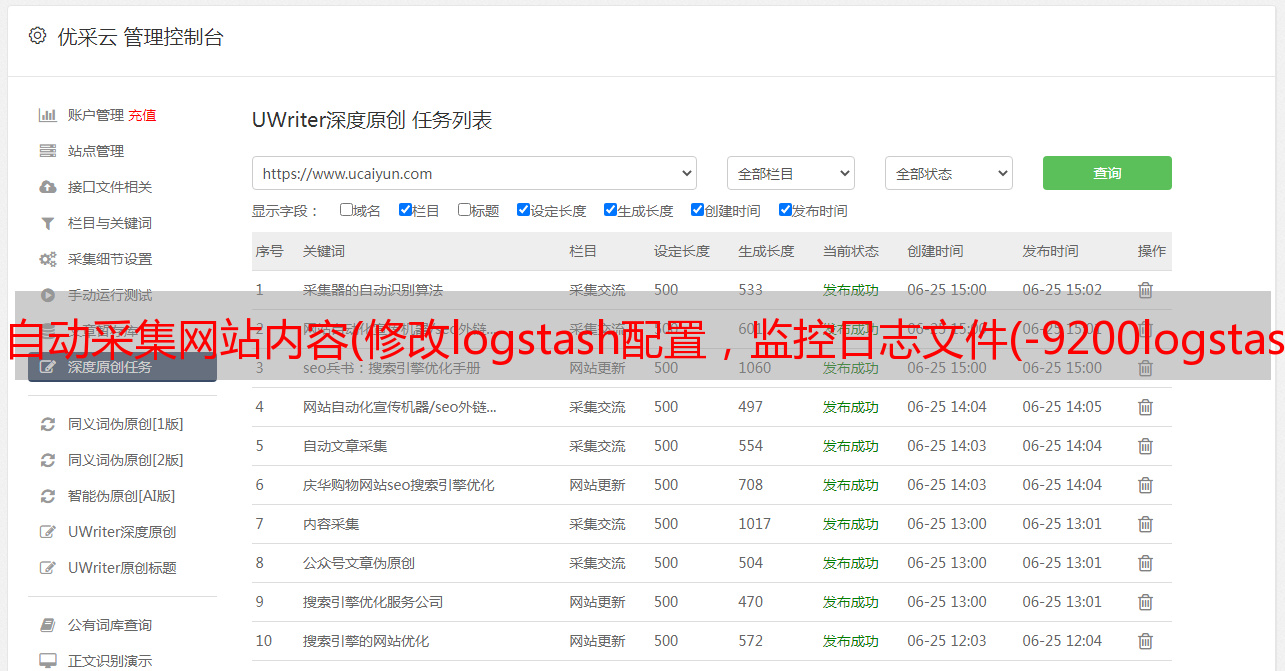 自动采集网站内容(修改logstash配置,监控日志文件(-9200logstash) )