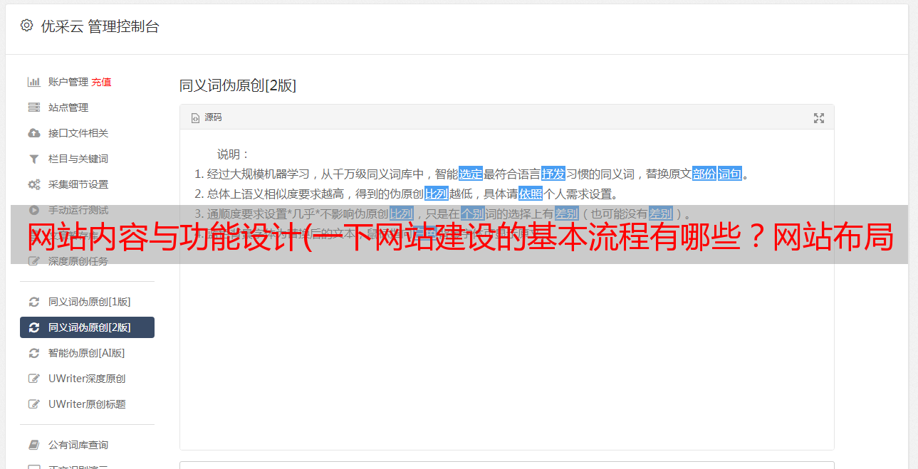 优采云 发布时间: 2021-12-29 00:08网站内容与功能设计(一下网站建设的基本流程有哪些?网站布局与功能设置)