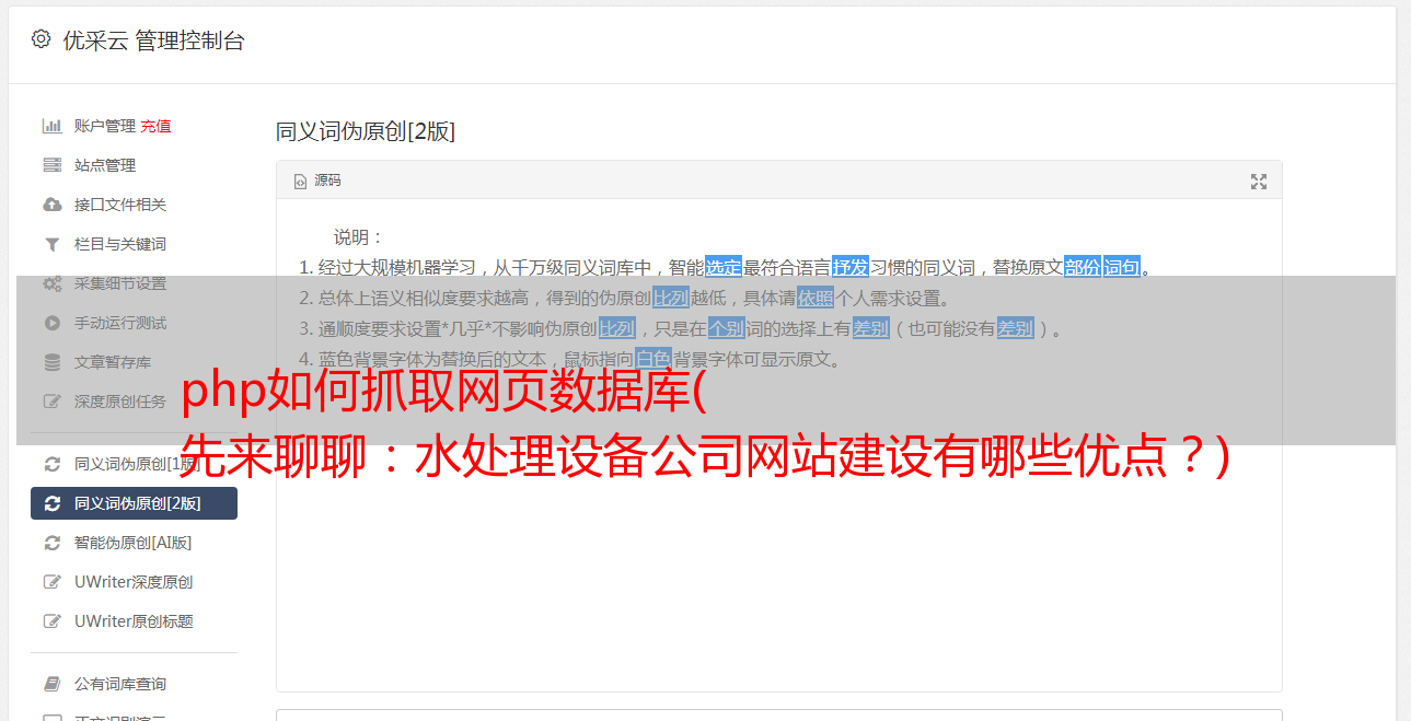 php如何抓取网页数据库( 先来聊聊:水处理设备公司网站建设有哪些优点?)