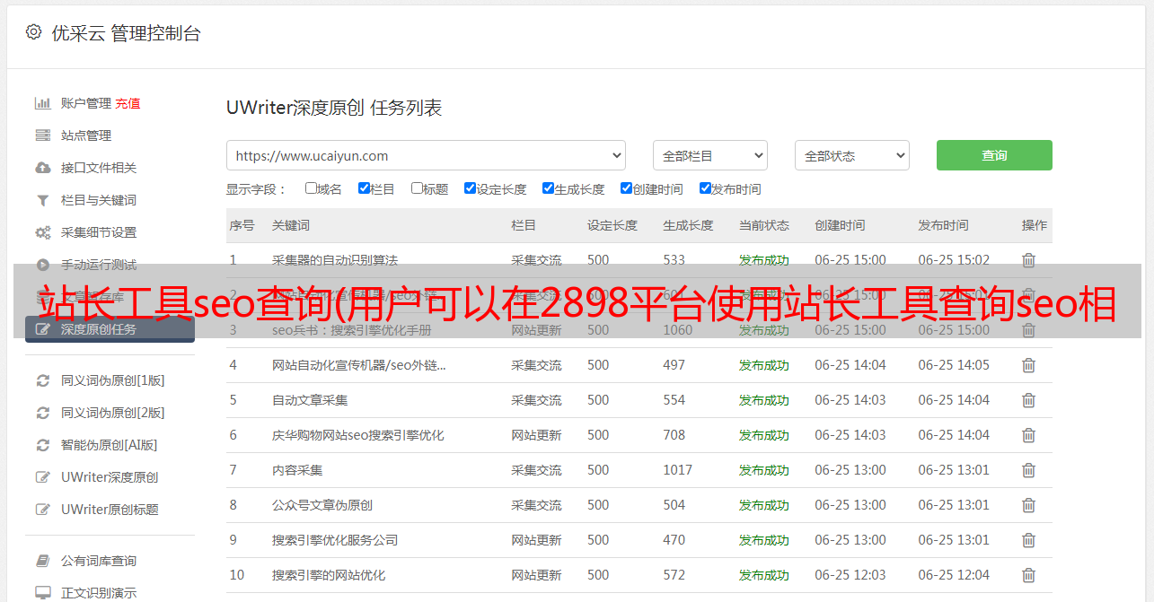 优采云 发布时间: 2021-12-29 08:18站长工具seo查询(用户可以在2898平台使用站长工具查询seo相关信息了!)