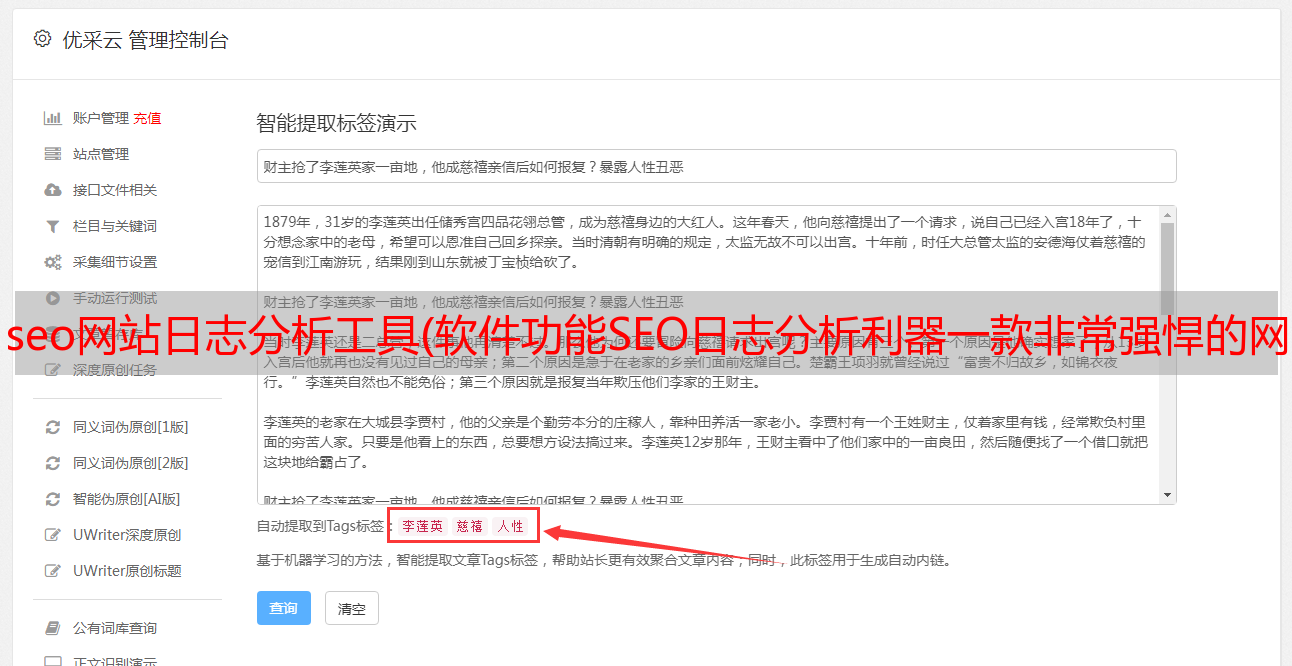优采云 发布时间: 2021-12-29 10:13seo网站日志分析工具(软件功能SEO日志分析利器一款非常强悍的网站LOG
