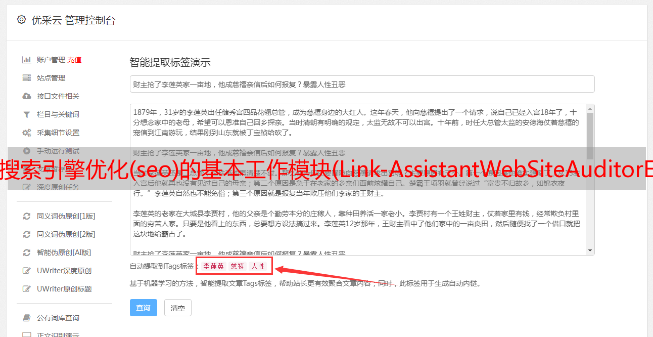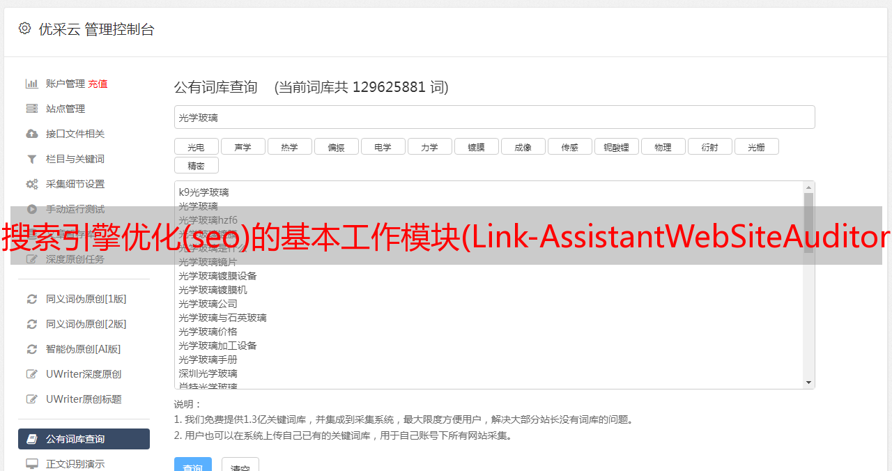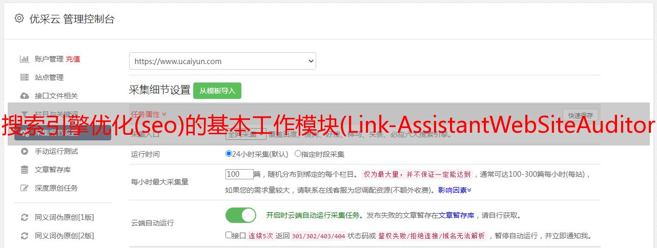 优采云 发布时间: 2021-12-29 11:10搜索引擎优化(seo)的基本工作模块(Link-AssistantWebSiteAuditorEnterprise)