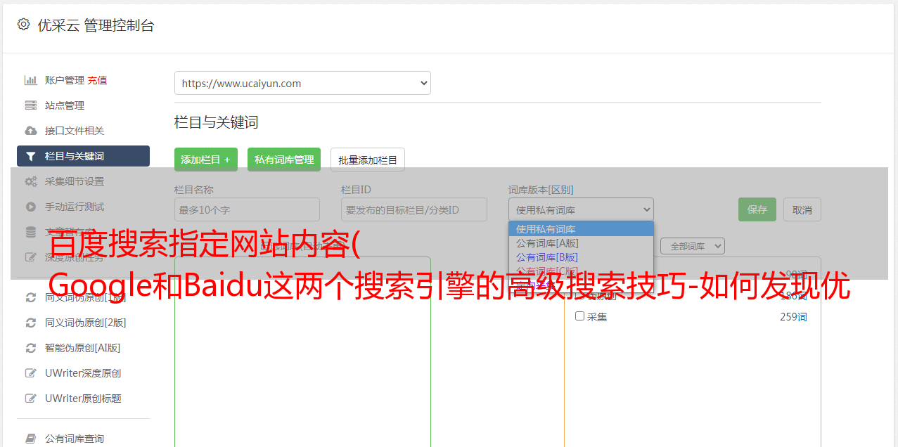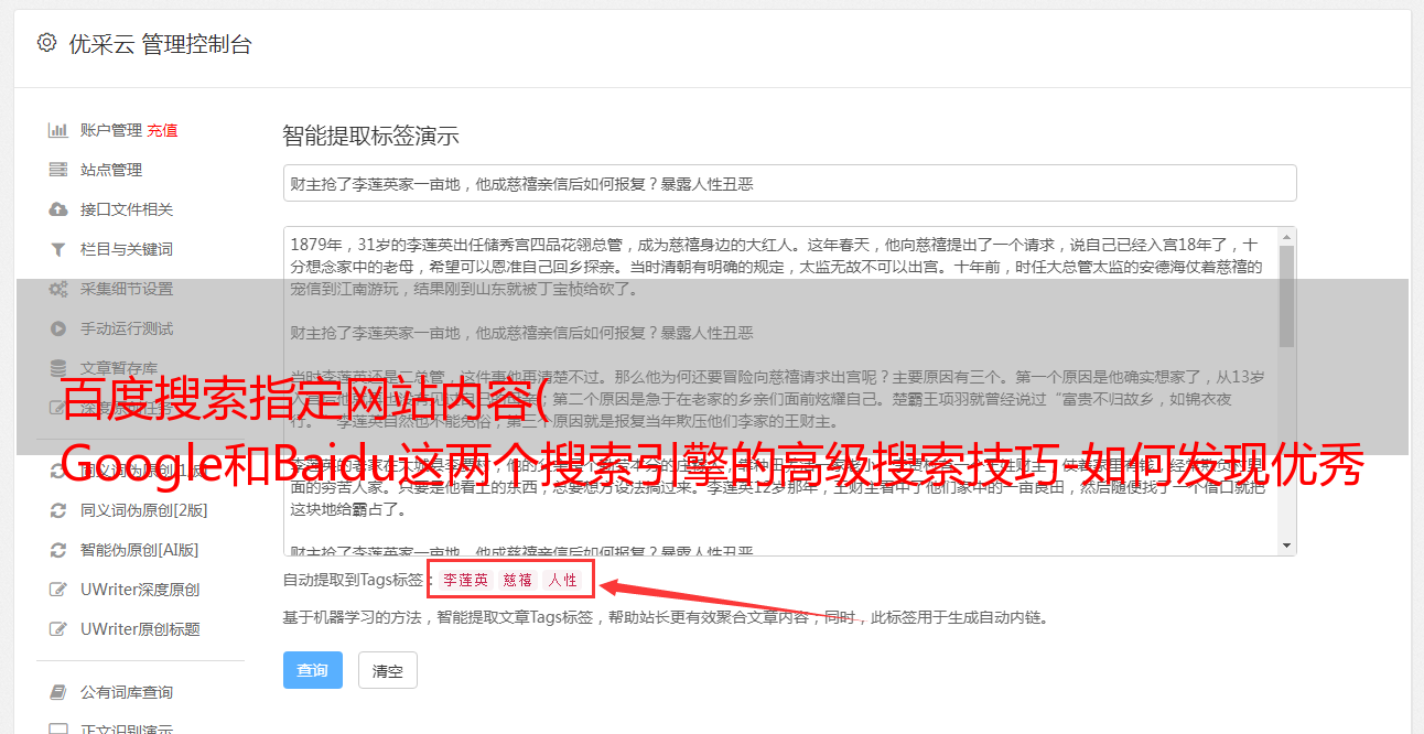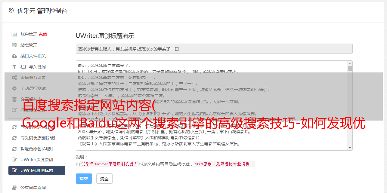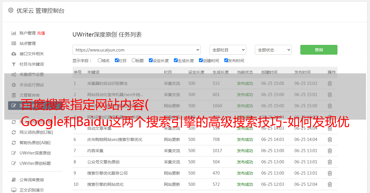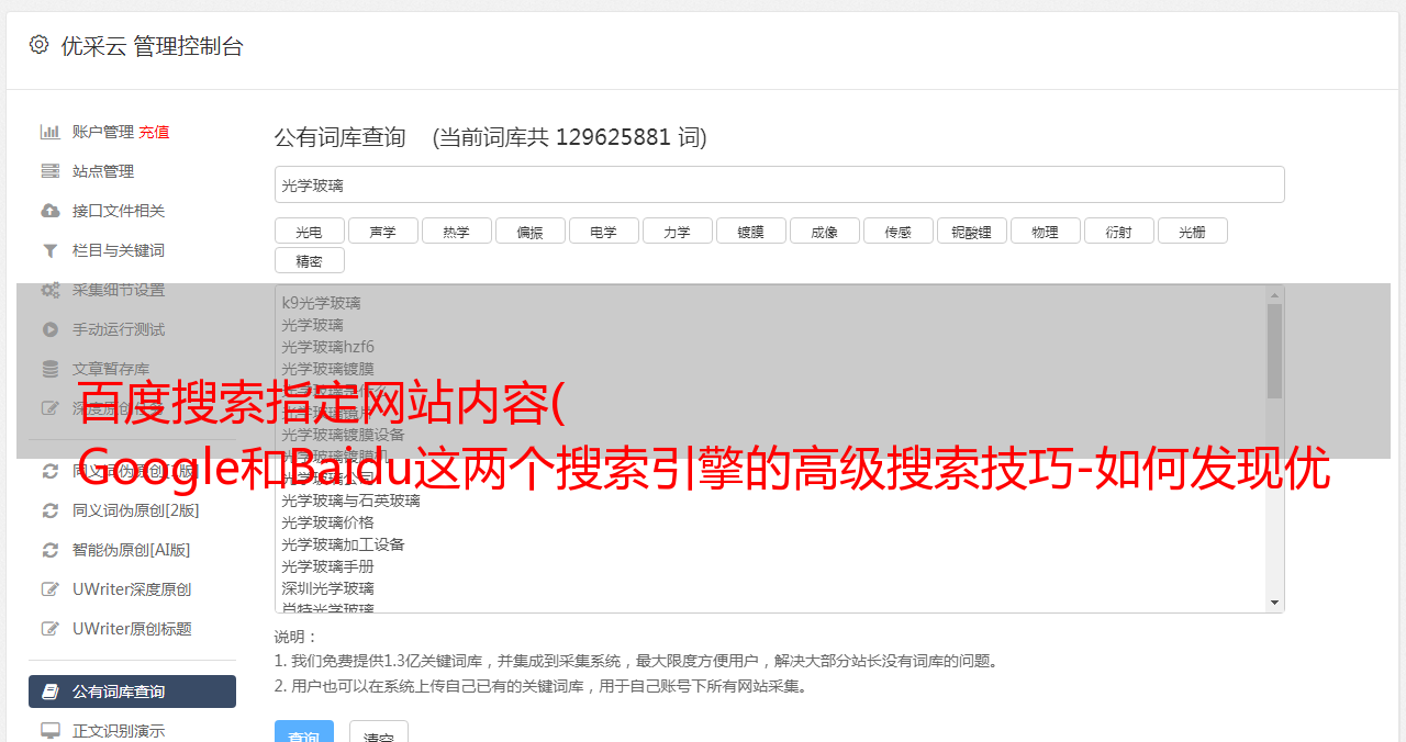 优采云 发布时间: 2021-12-29 11:14百度搜索指定网站内容(