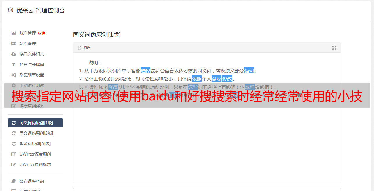 优采云 发布时间: 2021-12-29 12:07搜索指定网站内容(使用baidu和好搜搜索时经常经常使用的小技巧)
