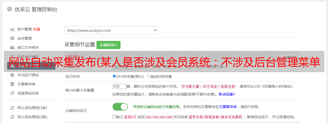 网站自动采集发布(某人是否涉及会员系统:不涉及后台管理菜单:留空)