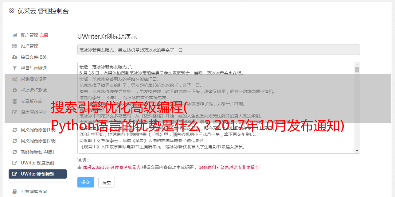 搜索引擎优化高级编程( Python语言的优势是什么?2017年10月发布通知)