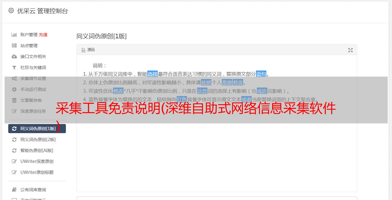 采集工具免责说明(深维自助式网络信息采集软件 )