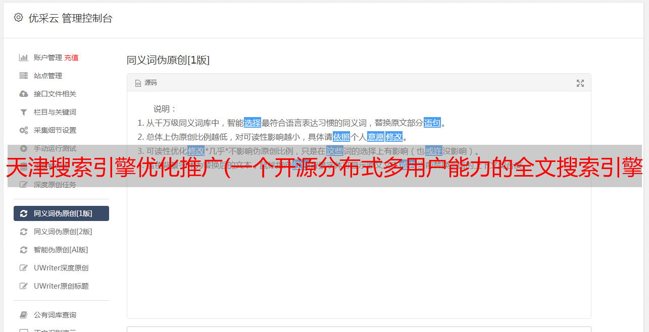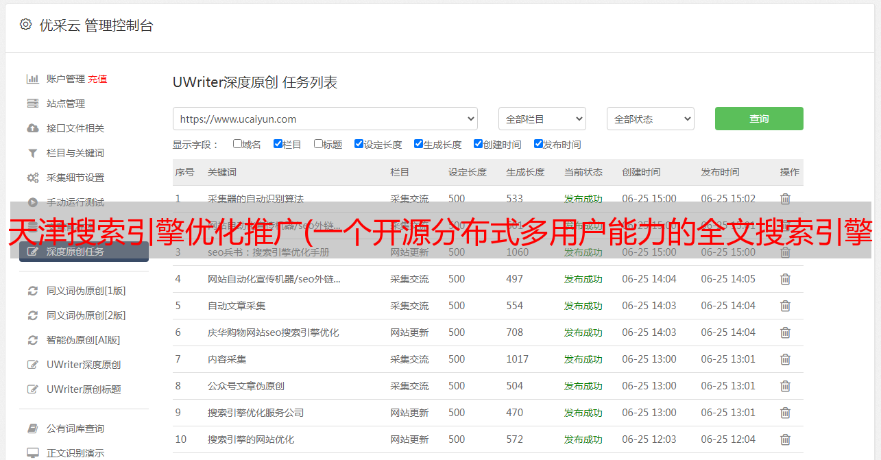 优采云 发布时间: 2021-12-29 16:11天津搜索引擎优化推广(一个开源分布式多用户能力的全文搜索引擎