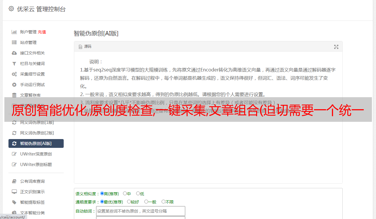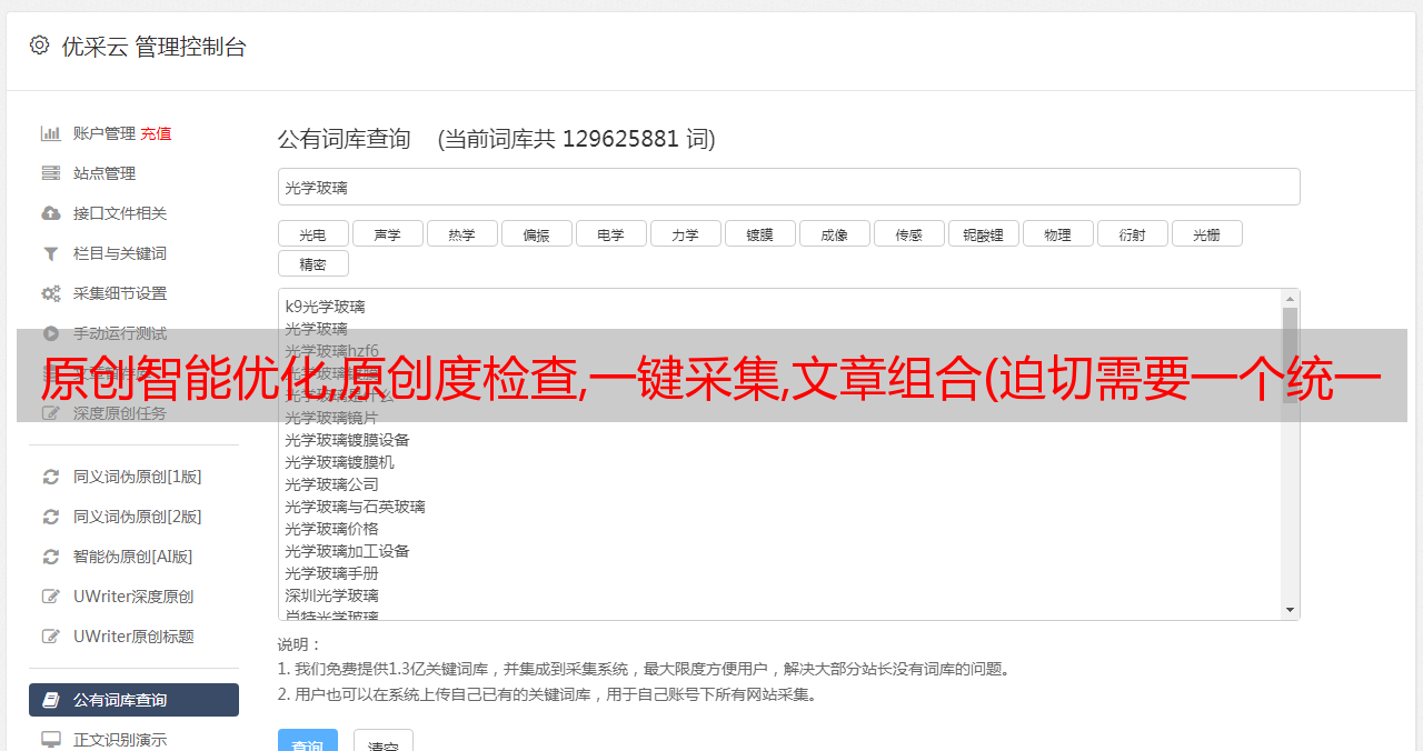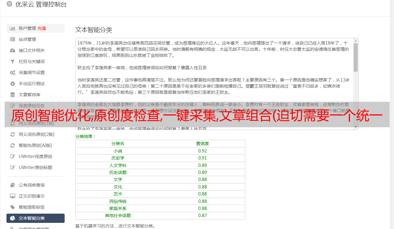 优采云 发布时间: 2021-12-29 17:13 原创智能优化,原创度检查,一键