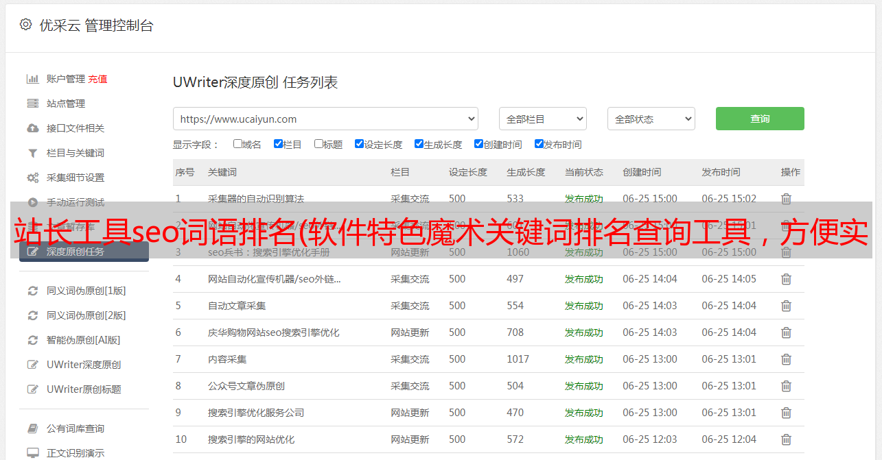 优采云 发布时间: 2021-12-30 00:01站长工具seo词语排名(软件特色魔术关键词排名查询工具,方便实用,支持多个网站多个关键词