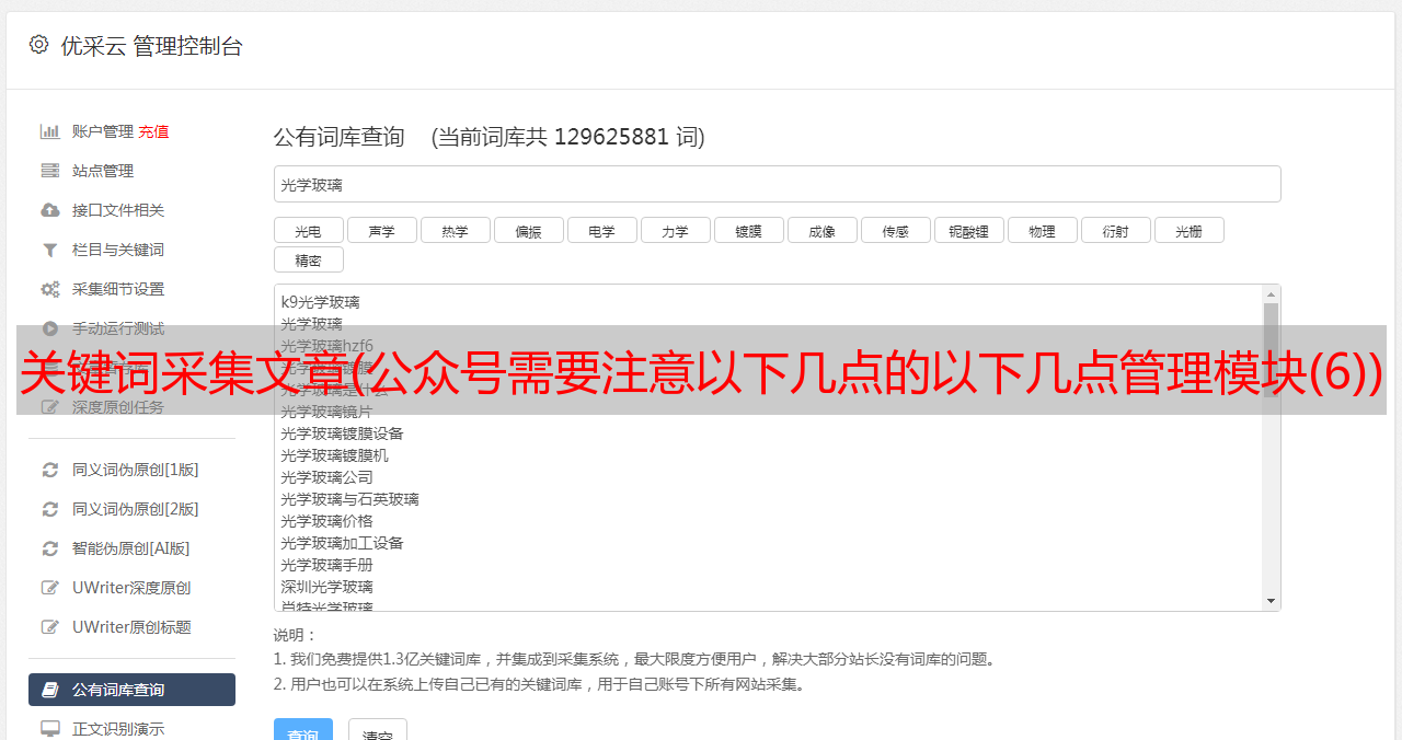 关键词采集文章(公众号需要注意以下几点的以下几点管理模块(6))