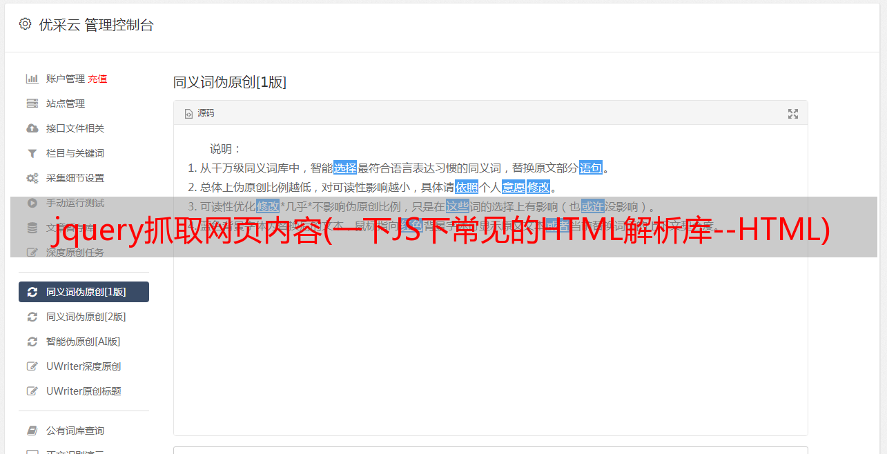 jquery抓取网页内容(一下JS下常见的HTML解析库--HTML)