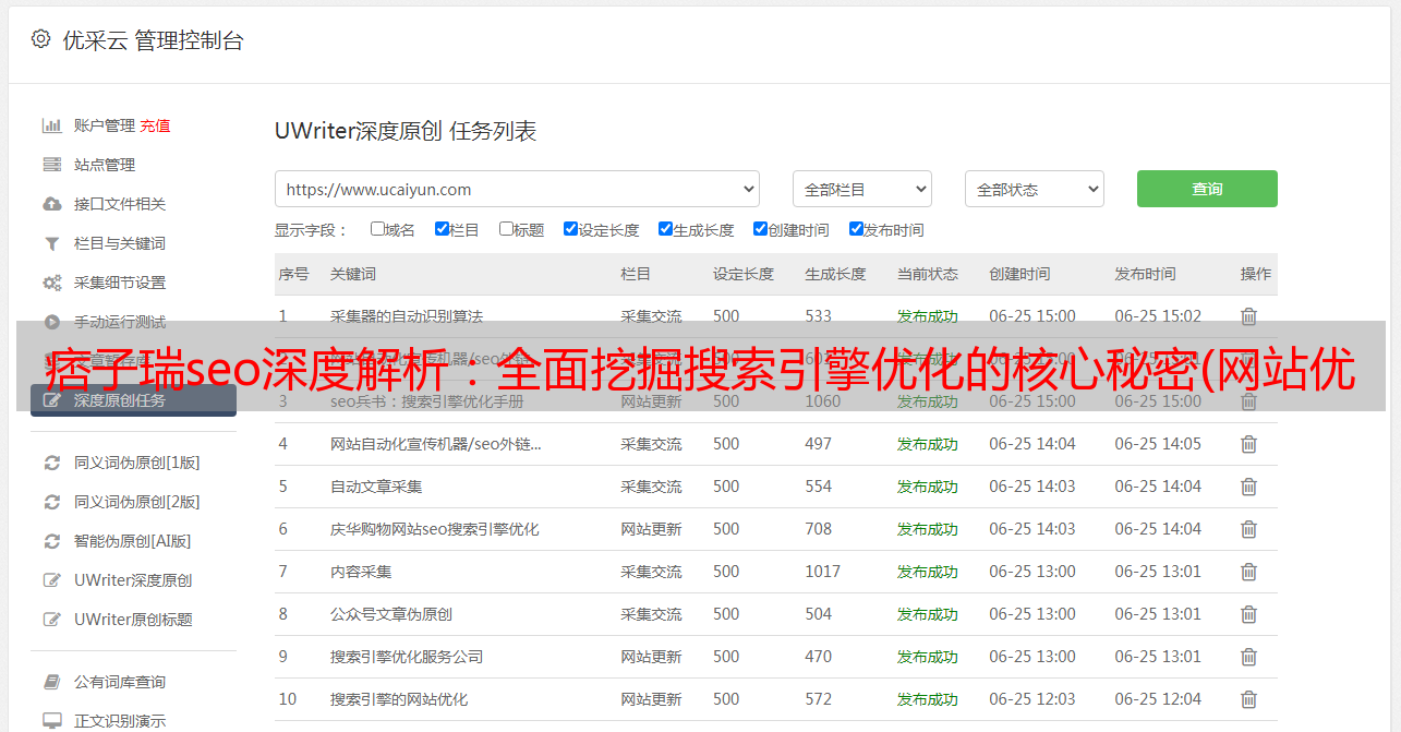 优采云 发布时间: 2021-12-30 05:02痞子瑞seo深度解析:全面挖掘搜索引擎优化的核心秘密(网站优化的问题seo深度解析的核心秘诀不明白)