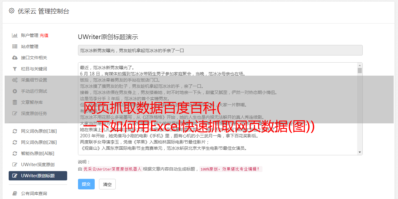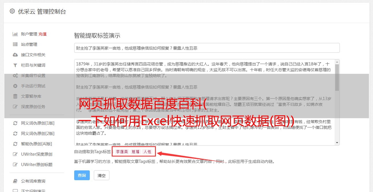 优采云 发布时间: 2021-12-30 05:14网页抓取数据百度百科(