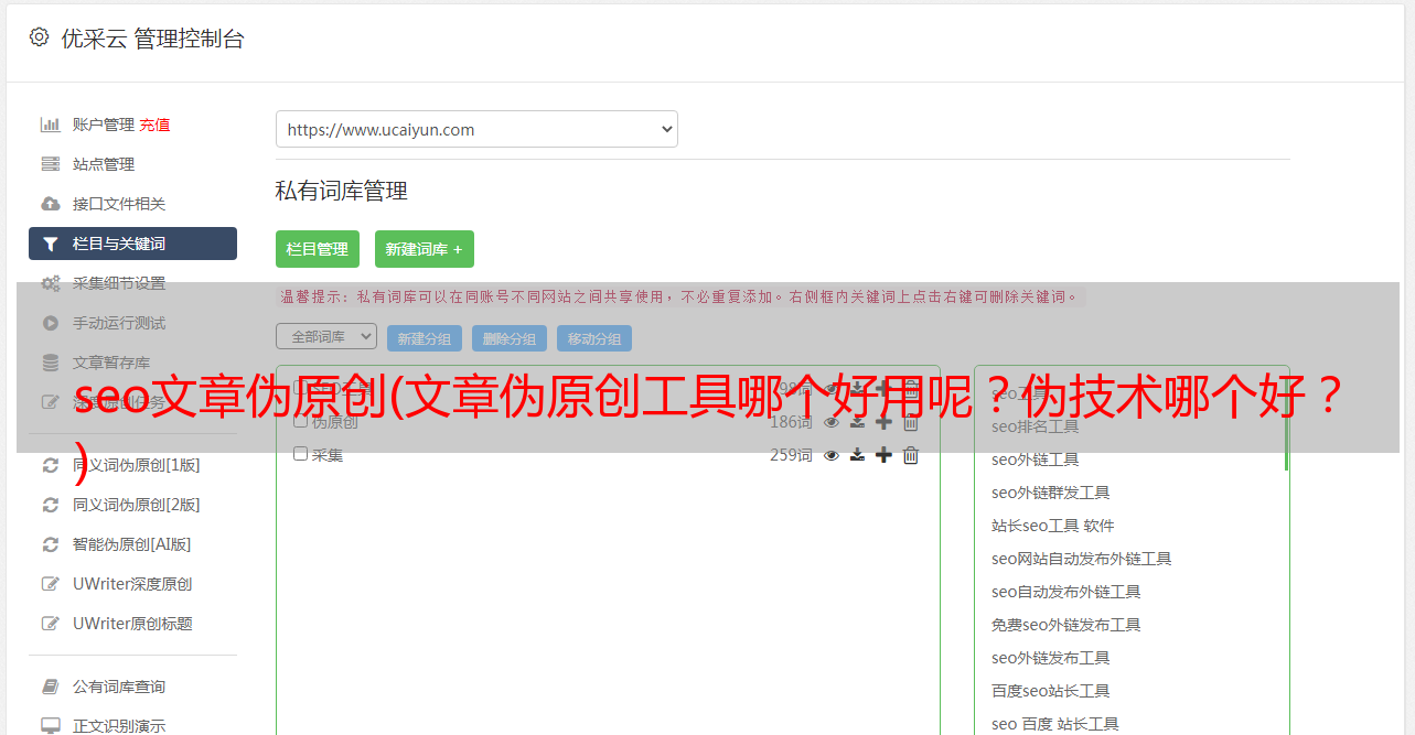 2、新云查抄伪原创工具:新云查抄伪原创工具是一款免费在线编辑工具,结合了八种ai智能一键伪原创模式,支持词库随机替换、句子随机洗牌和段落。既节省时间又易于操作。很大程度上保留了文章的原意,提高了伪原创帖子的可读性和原创性。新增Cloud Check伪原创支持目前伪原创工具中少有的图文伪原创模式。