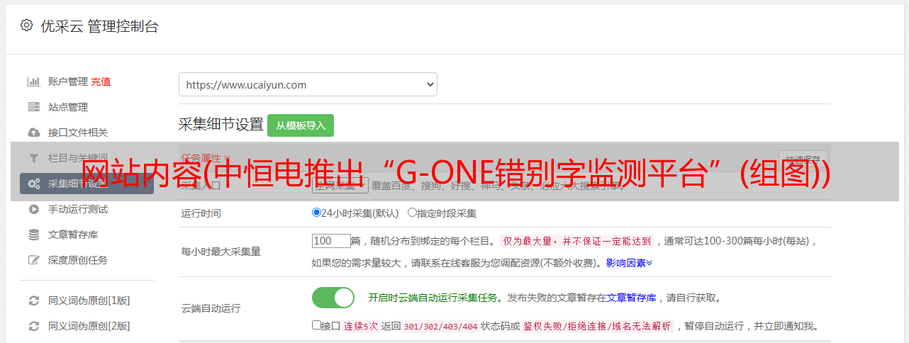 优采云 发布时间: 2021-12-30 19:12网站内容(中恒电推出“G-ONE错别字监测平台”(组图))