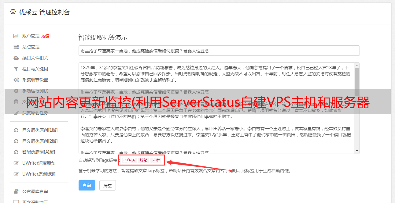 优采云 发布时间: 2021-12-31 00:24网站内容更新监控(利用ServerStatus自建VPS主机和服务器性能和宕机监控平台-效果美化和自定义)