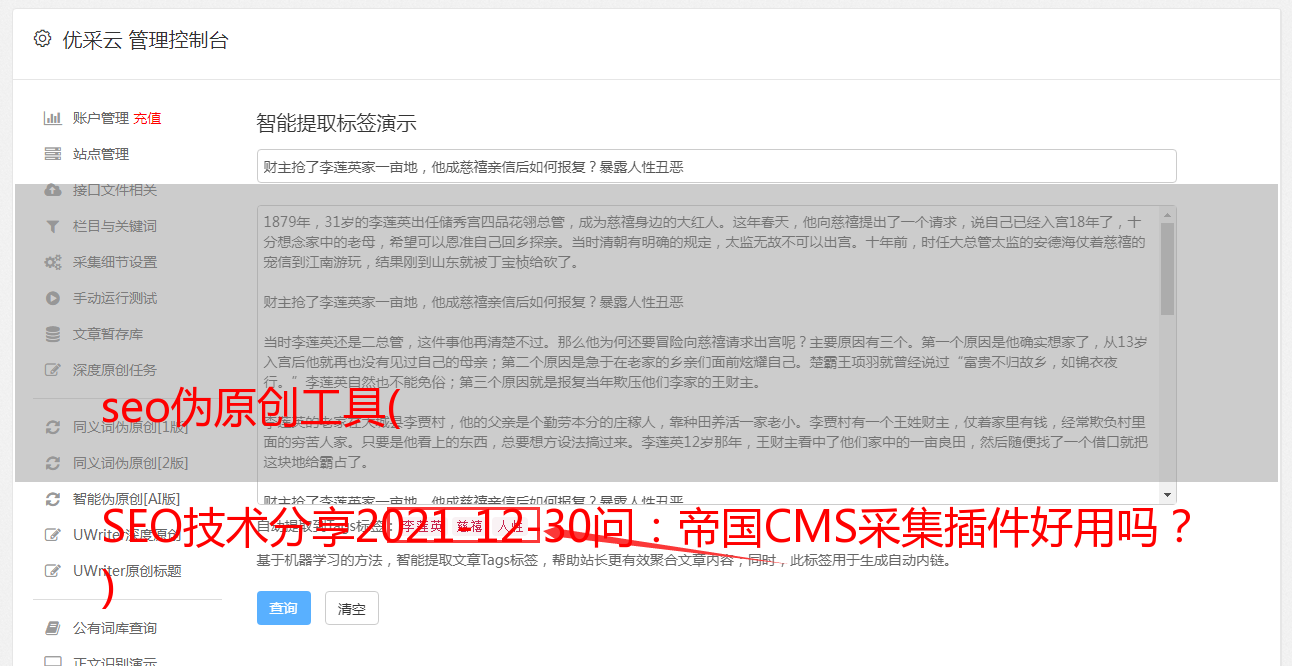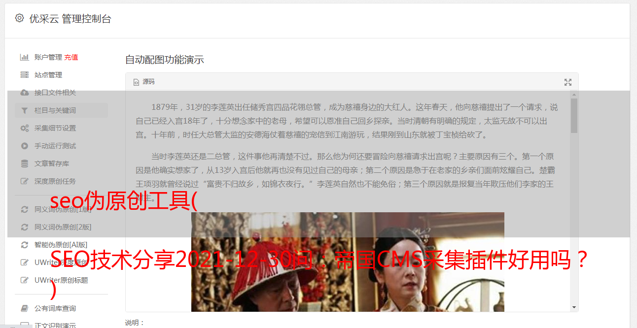 seo伪原创工具( SEO技术分享2021-12-30问:帝国CMS采集插件好用吗? )
