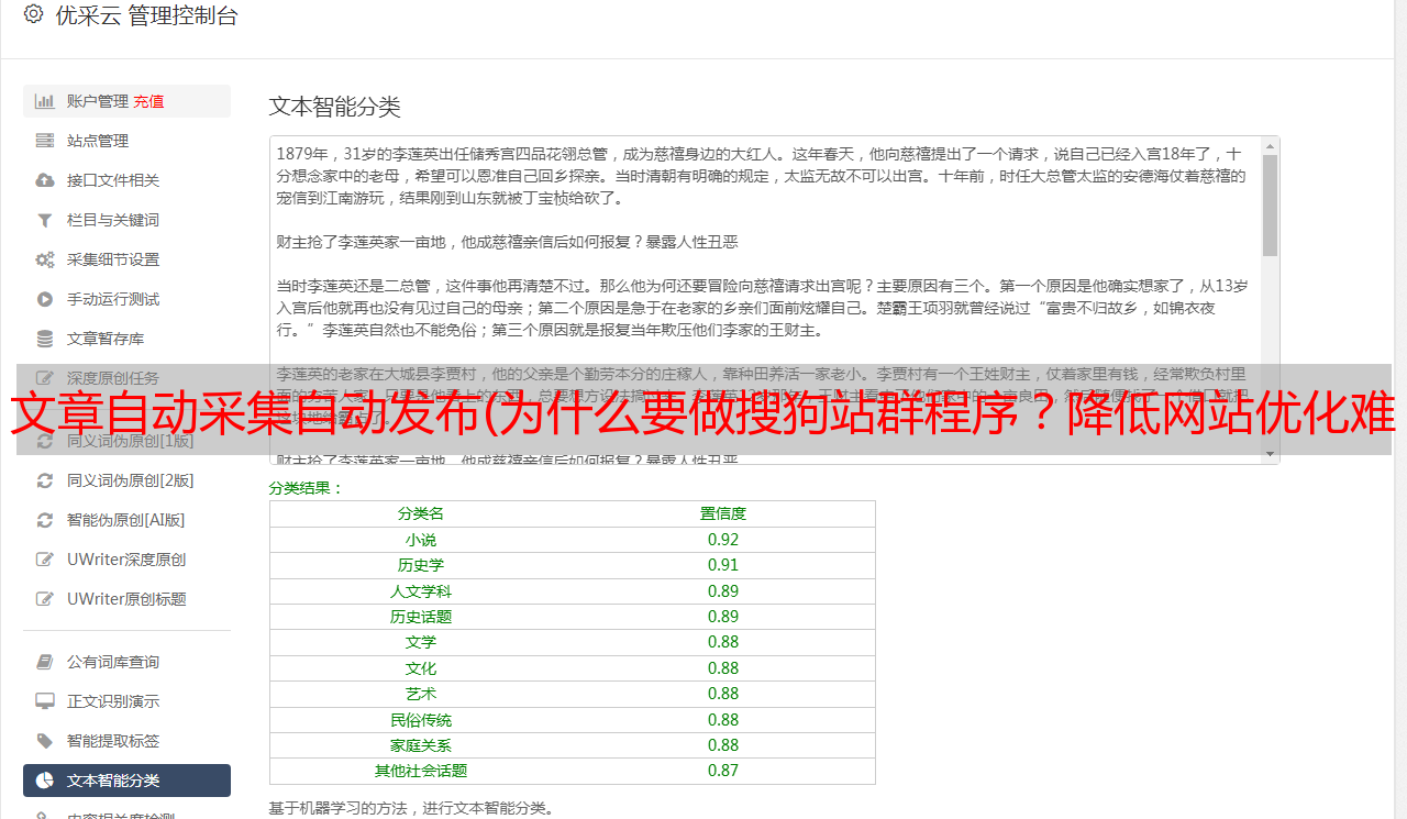 优采云 发布时间: 2021-12-31 04:17文章自动采集自动发布(为什么要做搜狗站群程序?降低网站优化难度!