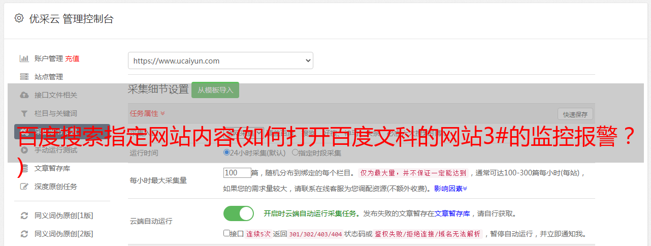 优采云 发布时间: 2021-12-31 05:15百度搜索指定网站内容(如何打开百度文科的网站3#的监控报警?