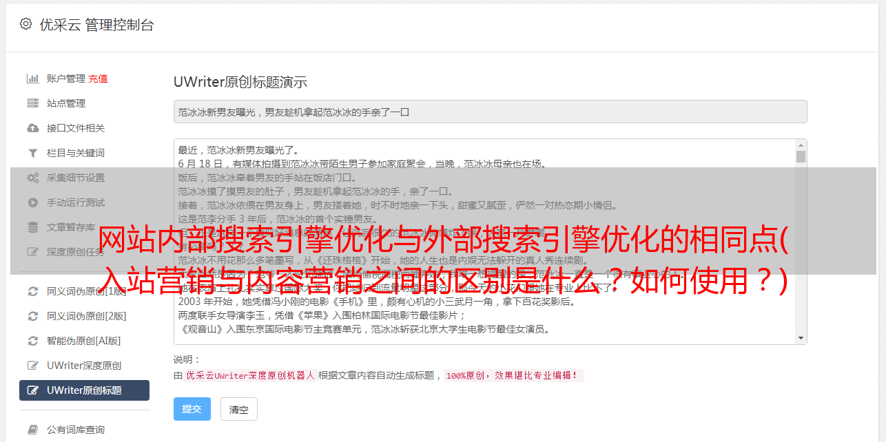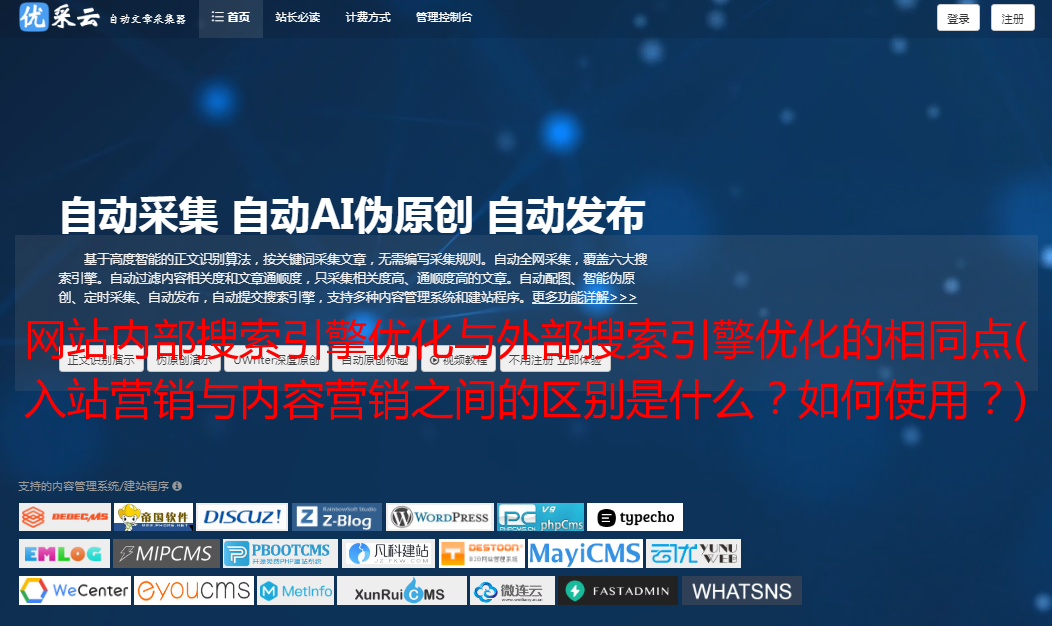 优采云 发布时间: 2021-12-31 07:02网站内部搜索引擎优化与外部搜索引擎优化的相同点(