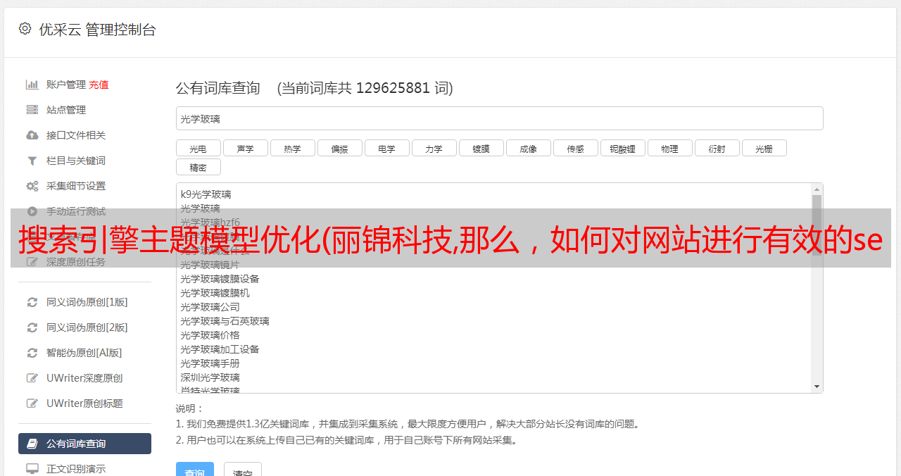 优采云 发布时间: 2021-12-31 07:16搜索引擎主题模型优化(丽锦科技,那么,如何对网站进行有效的seo操作)