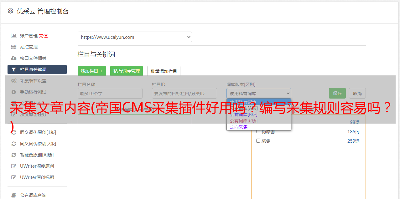 优采云 发布时间: 2021-12-31 08:08采集文章内容(帝国CMS采集插件好用吗?编写采集规则容易吗?