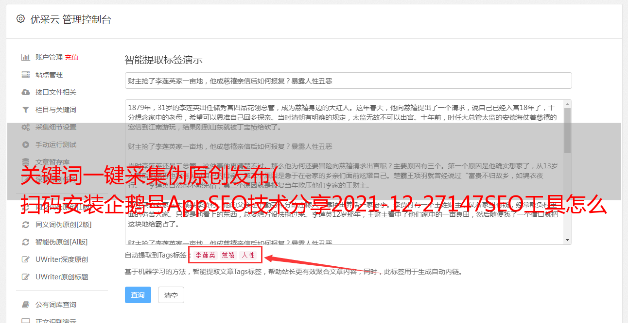 关键词一键采集伪原创发布( 扫码安装企鹅号AppSEO技术分享2021-12-27147SEO工具怎么样)
