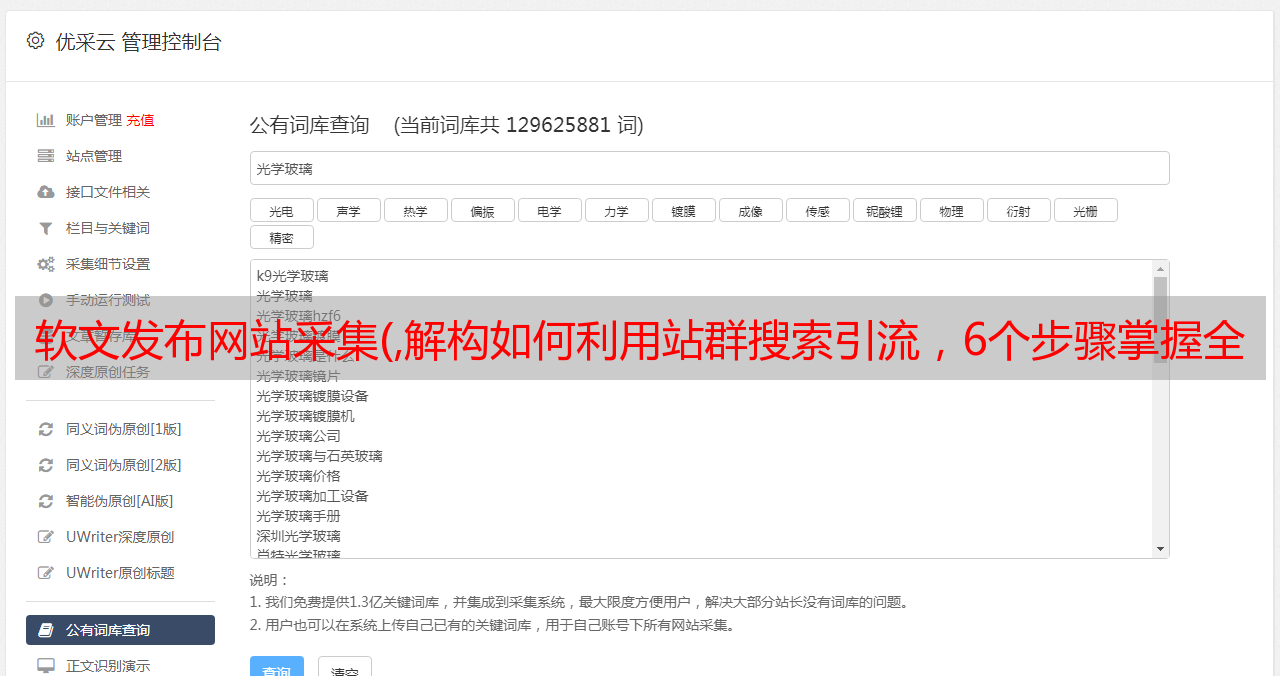 优采云 发布时间: 2021-12-31 12:18软文发布网站采集(,解构如何利用站群搜索引流,6个步骤掌握全部玩法)