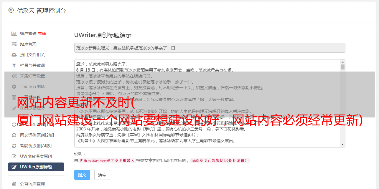 优采云 发布时间: 2021-12-31 16:31网站内容更新不及时(