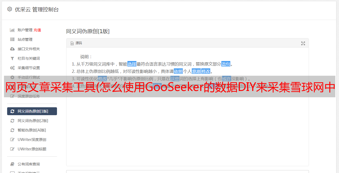 网页文章采集工具(怎么使用GooSeeker的数据DIY来采集雪球网中的雪 )