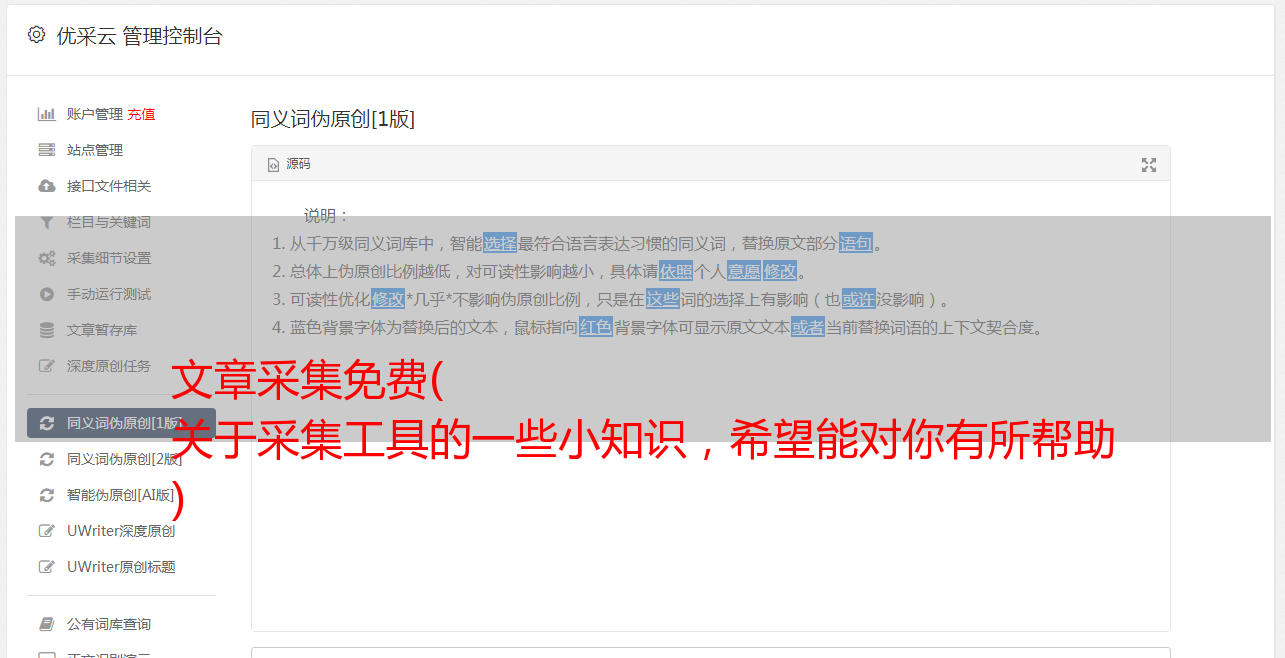 第四点,采集过来的内容我们怎么处理?通过伪原创提高采集文章SEO收录率,我们肯定不会达到采集 100%原创。使用伪原创的目的是想办法绕过搜索引擎或新媒体的收录重复检查算法。让内容收录更快,增加文章的流量。